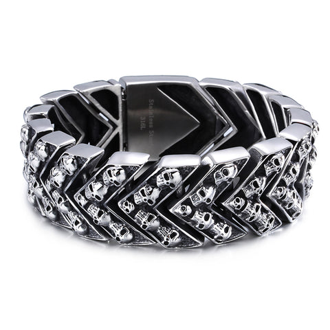 The Quantum Skull Bracelet is a truly unique statement piece. Features a stream of detailed skulls that flows around your wrist. Made from solid stainless steel to withstand the stress of regular wear or an active lifestyle. Weight: 153g. Length: 21.5cm. We ship with a USPS tracking number. Shipping takes between two and four weeks. Don't miss out, click the "Add to Cart"...
