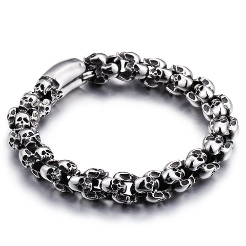 The Infinite Skull Bracelet is a truly unique statement piece. Features a stream of detailed skulls that flows around your wrist. Made from solid stainless steel to withstand the stress of regular wear or an active lifestyle. Weight: 126g. Length: 22cm. We ship with a USPS tracking number. Shipping takes between two and four weeks. Don't miss out, click the "Add to...