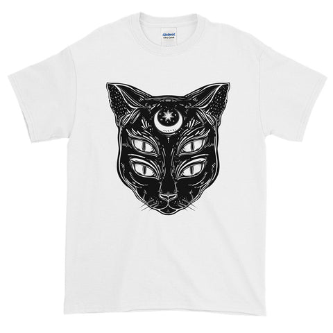 The Black Cat T-Shirt features an original Black Cat design exclusive to Multiverse Gifts on Gildan® men's cotton t-shirt! Your choice of 3 designs in black or white. Also available in a Women's Black Cat T-Shirt. T-Shirt Features 100% jersey knit 6oz. fabric weight Pre-shrunk Seamless, double-need ⅞” collar Taped neck and shoulders Classic fit Your typical 100% cotton t-shirt (except for heather...