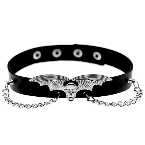 Embrace your shadows with the winged skull choker. Material: PU Leather, Zinc Alloy. We ship with a USPS tracking number. Shipping takes between two and four weeks. Click the "Add to Cart" button now!Note: Please allow 2-4 weeks for delivery.