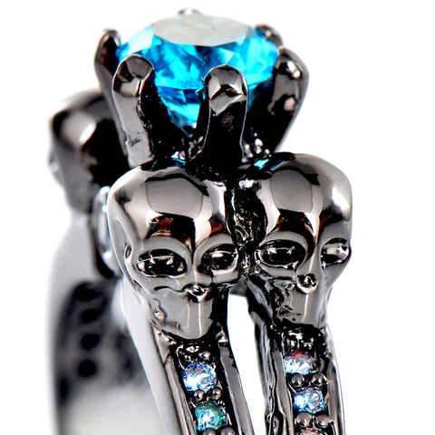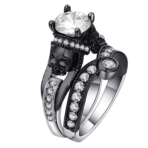 The Majestic Skeleton ring features twin skeletons that curl around your finger and is intricately adorned with a stunning iridescent crystal. A unique statement piece that is great for a night out or everyday casual wear. Material: Cubic Zirconia, Black Gold Plated, Silver Plated, Nickel Free. Surface Width: 8 mm. Designed and created with love and care. We ship with a USPS...